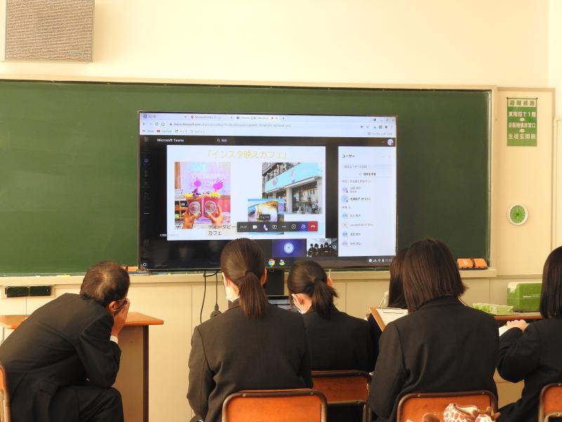 商業科「ビジネス・コミュニケーション」✖英語科「英語コミュニケーション」による教科横断型の授業の様子です。