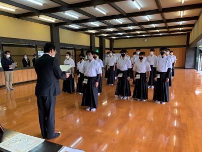 3月27日(日)、加賀市武道館弓道場で第44回加賀市武道館弓道場開設記念弓道大会が開催されました。大会は新型コロナ感染拡大のため急遽、通信大会へと変更となりましたが、各自8射の近的競技が行われ、総的中数で順位を競いました。高校男子で本校選手 上田さん(3年)、出孝さん(2年)が同的中数で第1位に入賞しました。春季大会へ向けチームに勢いがつきました。
