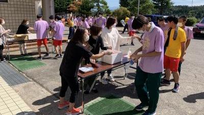 ゼリーを受け取る生徒や受け渡す保護者には満面の笑顔と感謝の挨拶が飛び交っていました。