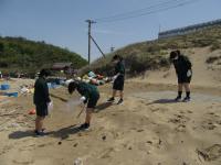 1年生、3年生は海岸のゴミ拾いを熱心に取り組んでいました。2年生は大縄跳び大会などを行い、