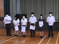 6月14日(月)の6限目終了後、総体・総文表彰伝達式並びに北信越総体壮行式を実施しました。総体・総文壮行式と同様にリモートで行いました。