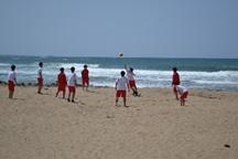 ③ゴミ拾いしながら宝探しを行いました。④海で投げ釣り体験を行いました。