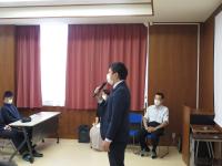 校長先生より、新任の2名の先生の紹介とWithコロナについての話があり、その後、後期生徒会役員紹介と表彰伝達式、全国大会出場者(全国高等学校陸上競技大会2020 高校女子3000mに北村 遥さんが出場)の激励会がありました。