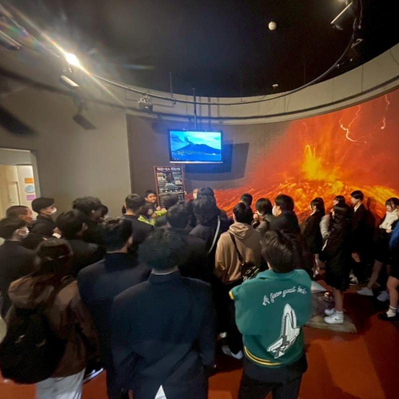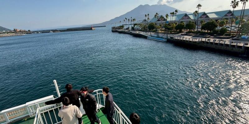 午前中は桜島を見学しました。天候に恵まれ、火口付近から立ち上る蒸気をはっきりと確認することができました。見学を通して、火山のしくみや名産物について学ぶとともに、自然の雄大さを肌で感じました。