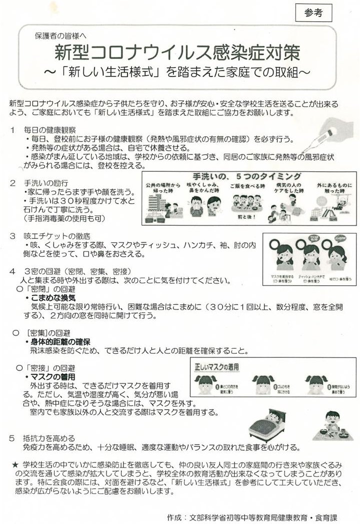 「新しい生活様式」を踏まえた家庭での取組(詳しくはこちら)