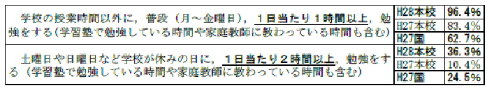 この3つの取り組みは、学校と家庭が歩調を合わせれば決して難しいことではありません。来年の3月までに右肩上がりに教育を向上させていくためには大切な取り組みです。よろしくお願いします。