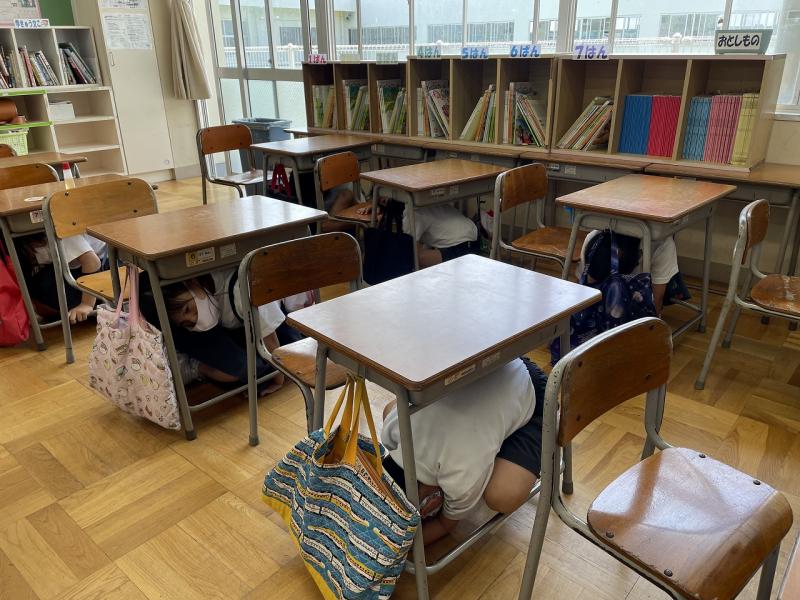 子どもたちは、「おさない」「はしらない」「しゃべらない」「もどらない」の4つの決まりをしっかりと守り、素早く屋上に避難することができました!