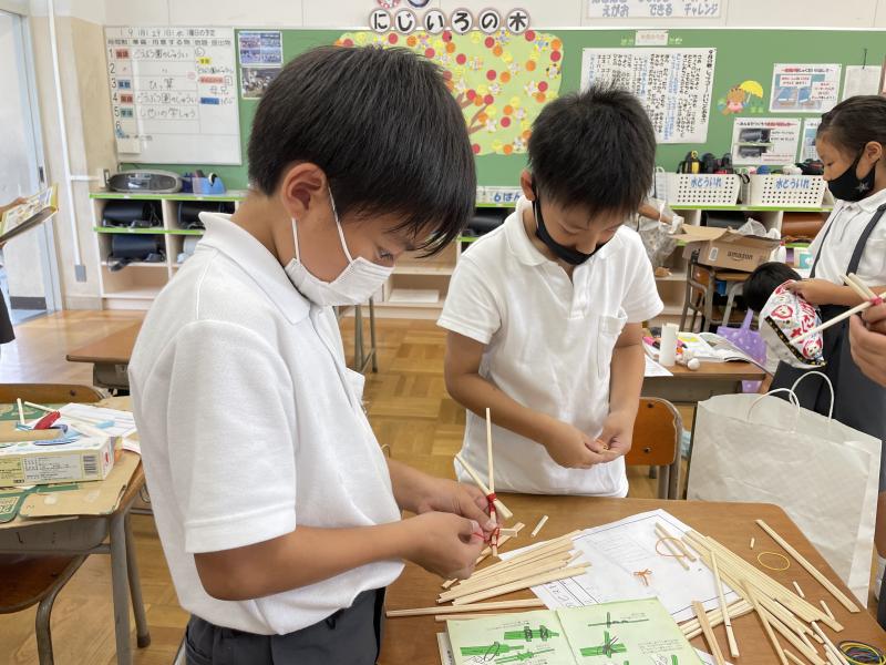 生活科では、子どもたちが楽しみにしていた「おもちゃ作り」が始まりました!この学習のゴールは、「おもちゃランドを開いて、1年生と一緒に遊ぼう」です。