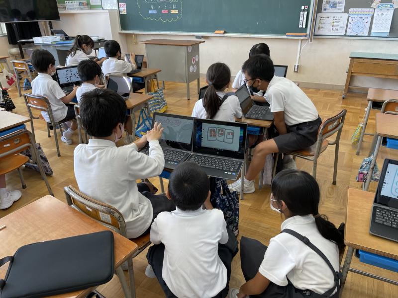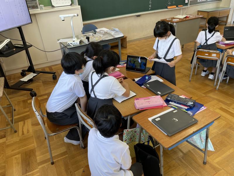 どうすればもっと読みやすくなるかをグループで話し合い、アドバイスをし合っていました。絵を描く際には、chromebookで撮った写真を見ながら、細かいところまで描くことができていました!