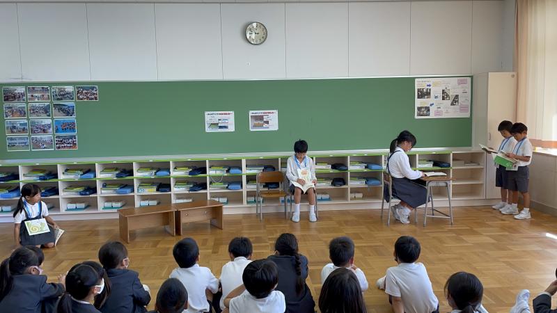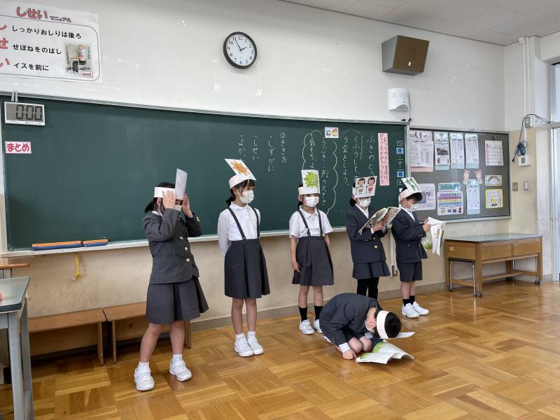 授業参観では、国語科「ふきのとう」のなりきり音読発表会をしました。お家の人に見せるために声の大きさや高さ、姿勢などの工夫をたくさん考えました!本番では、少し緊張しながらも堂々と発表することができました!