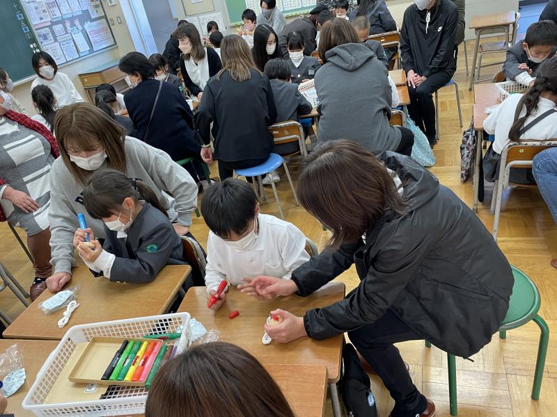 自分たちの作ったおもちゃで1年生と遊ぶことを楽しみに、グループとみんなで協力しながら一生懸命作っていました!