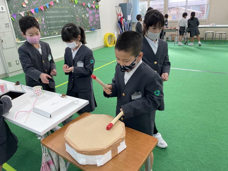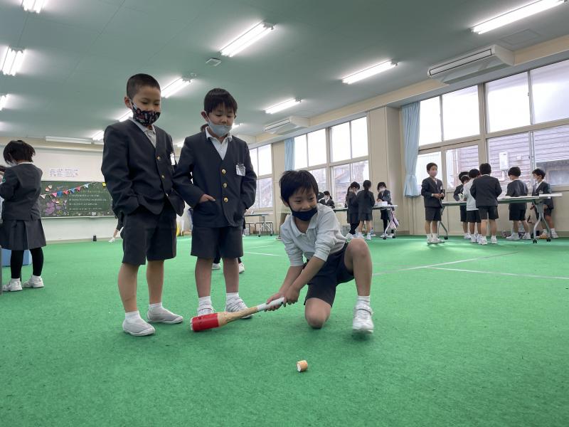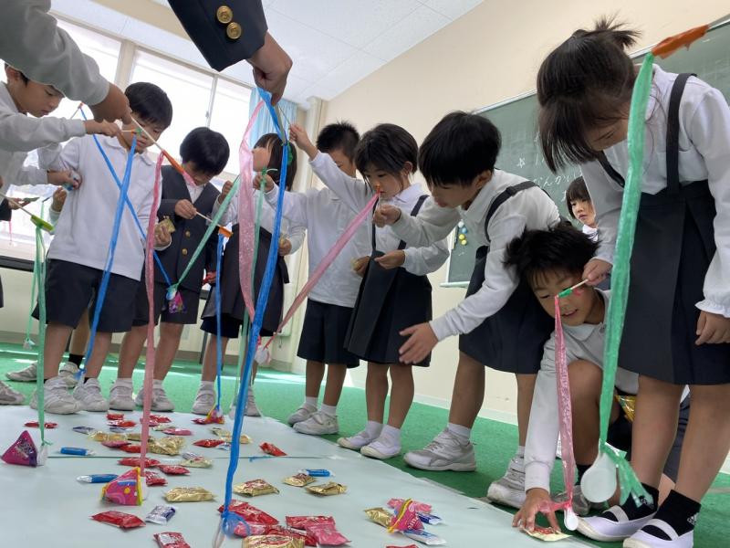 本日、1年生が秋のおもちゃランドに招待してくれました!秋のものを使ったおもちゃやゲームで、2年生をおもてなししてくれた1年生。2年生は、とても楽しそうに全てのおもちゃで遊んでいました!