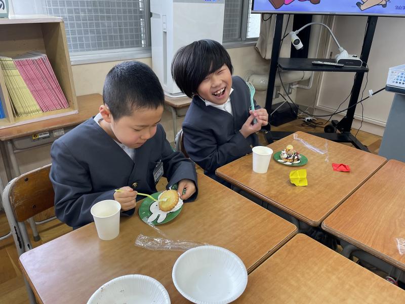「1年間よく頑張りました!」ということで、2年生最後のお楽しみ会を行いました!お化け屋敷をしたり体育館で遊んだりケーキを作って食べたりと、盛りだくさんの内容でした!子どもたちは終始笑顔で楽しんでいました♪