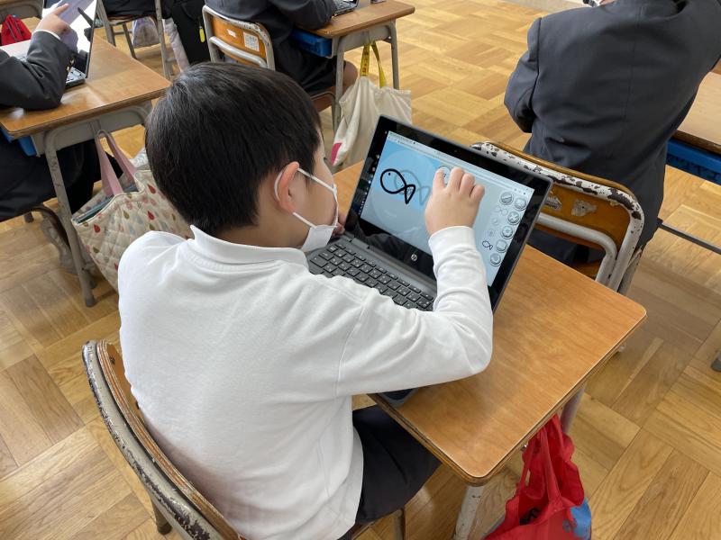 昨日の算数では、chromebookを使って授業を行いました。かけ算の式を図に表すという活動です。