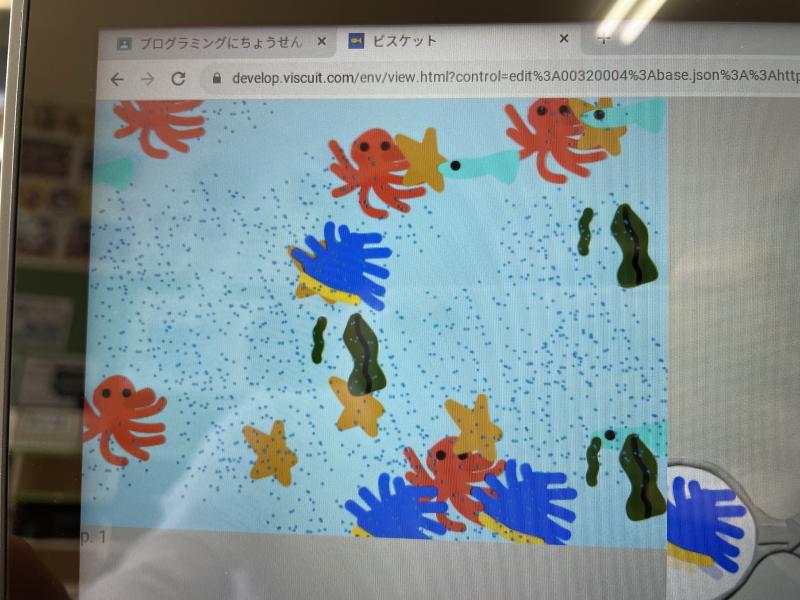 初めてのプログラミングに挑戦しました!プログラミングとは何か説明し、基本のやり方を伝えると子どもたちは思い思いにプログラムを作ることが出来ていました。子どもたちの吸収力の高さ、応用力の高さに驚きです!