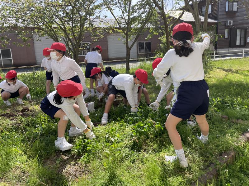 生活科の学習で、さつまいもを植えました!大きなさつまいもができるように、毎日のお世話頑張ります!!