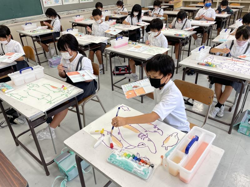 昨日の図工の授業では、前時で作った色々な形を、画用紙に写す活動をしました。活動をしていく中で、1つの形でも2種類の写し方があることに気付いたり、同じ形を何回も写すことで違った形に見えてきたりと、色々な発見があったようです!