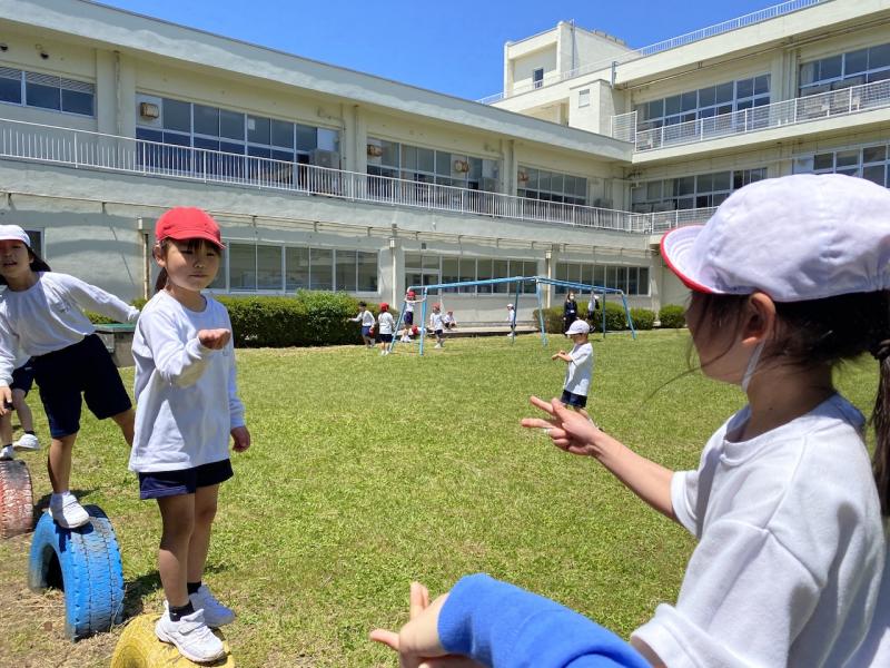 今日の生活科の時間は、1年生と一緒に遊びました!2年生は、1年生が楽しめて、みんなでできる遊びはなんだろうと考えました。今日は、進んで1年生に声をかけながら、考えた遊びを一緒に楽しんでいました!