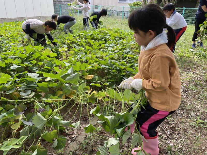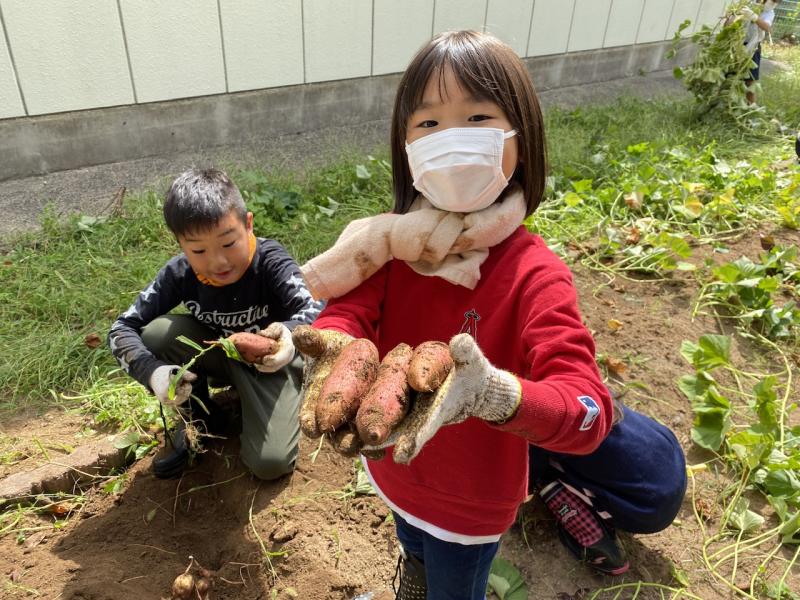 はじめは土を触るのに抵抗があった子どもたちでしたが、さつまいもがたくさん出てくるのが楽しくなり、夢中で掘っていました!短時間でしたが、たくさん収穫することができました♪