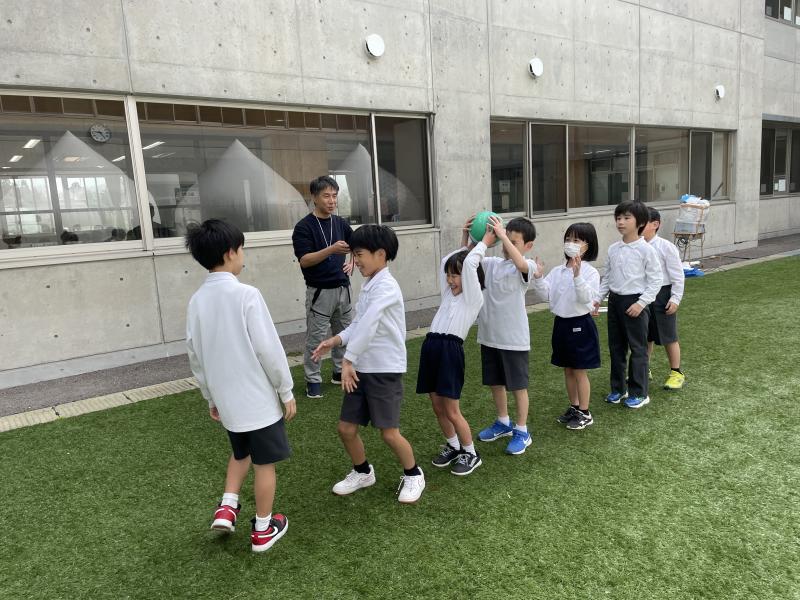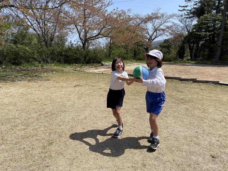 輪島中学校の中庭や向かいにある広場を使って体育の授業を行っています。普段できない分、思いっきり体を動かして運動をしている子どもたちの表情は、とてもきらきらとしています!体育の後は、いつも満足そうに帰ってきており、子どもたちの気分転換にもなっているようです♪