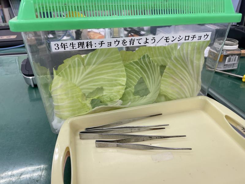 理科の授業で、モンシロチョウのも成長の様子を学習するため、教室にモンシロチョウの卵がやってきました!教室に虫かごが置かれた初日から、「ここに幼虫おるよ!」「どこどこ?」と、子どもたちは休み時間になると虫かごの前に集まり、観察を始めます。