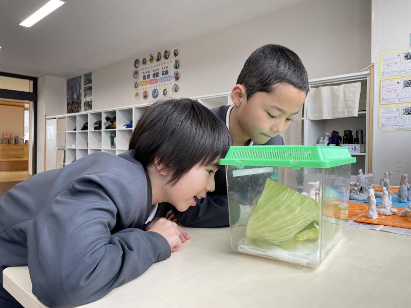 4連休明け、子どもたちは元気いっぱいに登校してきてくれました!教室で飼っていたモンシロチョウの様子が気になっていたようで、休み時間になると、さなぎに成長したモンシロチョウを食い入るように見ていました。