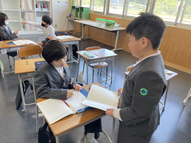 一人で問題と向き合ったり、友だちと話し合いながら取り組んだりと、考える方法を自分で選び、時間いっぱい考えることができました。