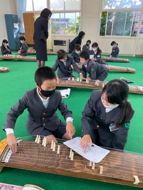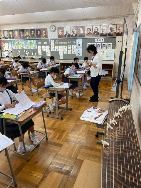 音楽の授業では、お箏の音色について考えました。最終的には、みんなでお箏をひくそうです。いったい、どんな演奏になるのか?楽しみですね!