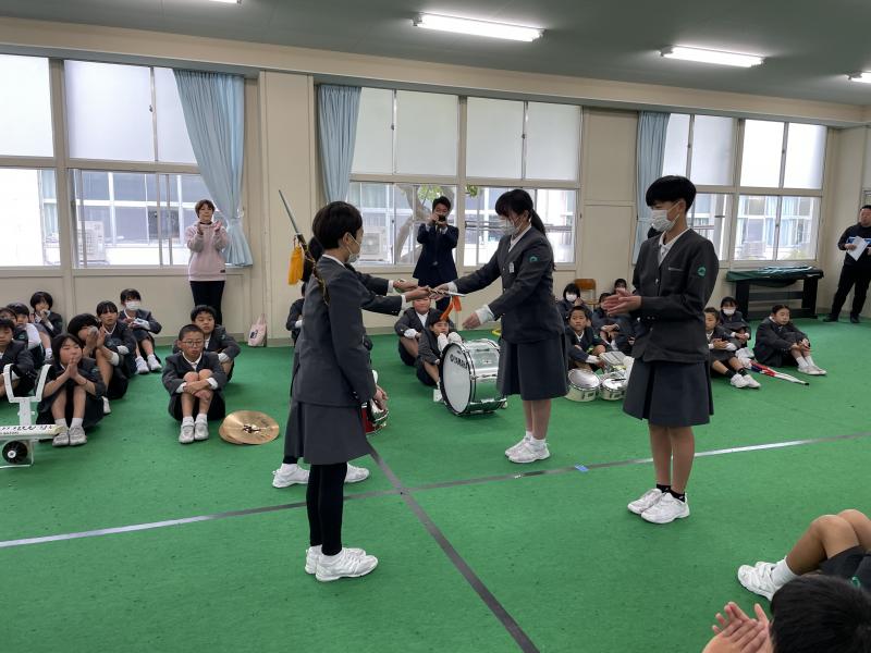 11月14日(火)に、金管鼓隊の引き継ぎ式が行われました。6年生から鳳至小学校の伝統である金管鼓隊を引き継ぎ、いよいよ5年生が主となって取り組んでいく番となりました。