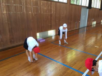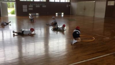 1年生はフラフープを使って間隔をとり、体を動かしました!バランス運動や柔軟運動等、たくさん汗をかきました。ステイホームで思い切り体を動かすことができなかった子どもたちでしたが、スッキリした気持ちになっていました。