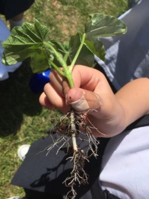 せっかく芽を出した朝顔を抜くことに、ドキドキしていた子どもたち。朝顔にはもじゃもじゃの根っこがありました。