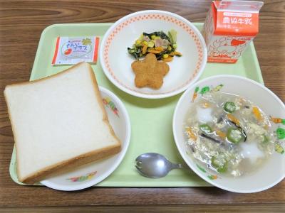 しかし、今日は週1回のパンの日ということで、そうめんではなく春雨をスープに入れてみました。