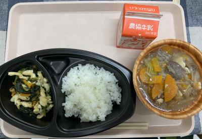 ごはん,すき焼き風煮,小松菜の煮びたし,牛乳