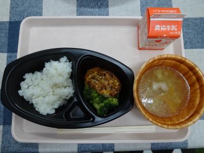 ごはん,豆腐ハンバーグ,ブロッコリー和え,千切りスープ,牛乳