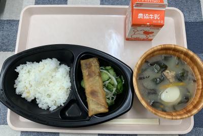 ごはん,揚げハルマキ,ゴマ酢和え,トックスープ,牛乳