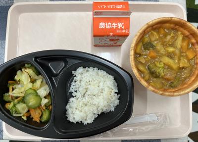 夏野菜カレー,フルーツのゼリー和え,牛乳