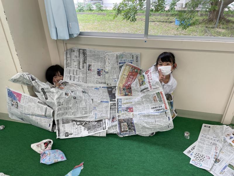 新聞紙に触れながら思い付いたものを作品にすることができた子どもたち。そんな子どもたちの創造力に驚かされました!