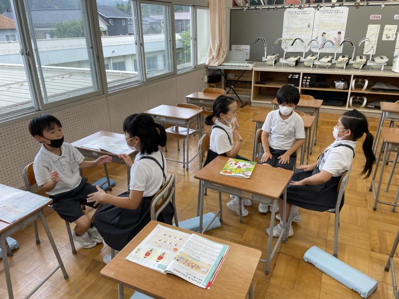 お話の内容は同じでも、台詞の言い方や速さ、表情や動きなど、場面の様子を想像しながら工夫が考えられており、それぞれのグループの色が出た音読劇になりました!子どもたちの表現力で、見に来てくださった先生方を楽しませてくれました♪