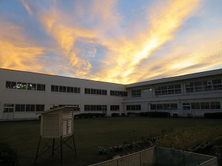 夕方、中庭からとても綺麗な夕日を見ることができました!