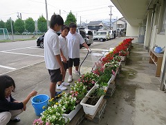栽培委員が毎朝水やりをしているプランターも移動しました!