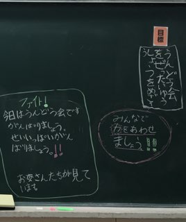 明日の運動会に向けて、ホワイトボード係さんからのメッセージがありました。