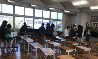 5年生では、卒業式に向けて、言葉と伴奏の練習を始めています。