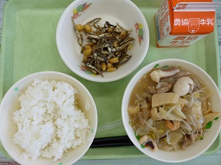 ごはん  八宝菜  小魚揚げ煮  牛乳