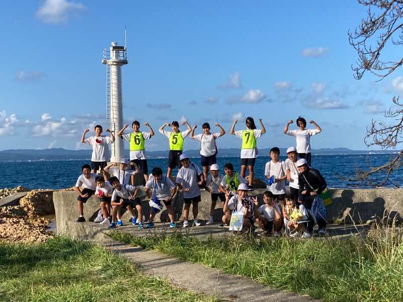 波が高く、足が海で濡れてしまっていますが、みんな協力してがんばっています。