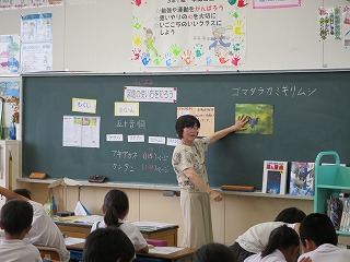 3年生の国語に時間に、倉田先生をお招きして、「図鑑の使い方」を学びました。