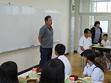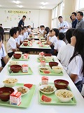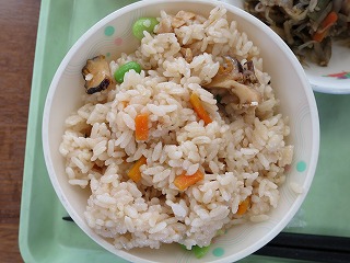 今日の給食は、サザエご飯です。輪島市漁業協同組合より提供していただいたサザエを給食の食材に使用しました。まさしく地産地消です。
