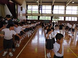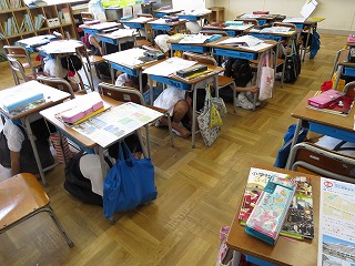 鳳至小学校でも昨年度に続き参加し、どの学年も素早く机の下に隠れるなど、自分の身を守る経験をしました。この経験が、今後に生きてくれると良いですね。