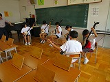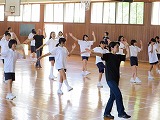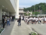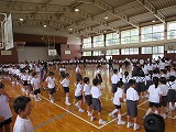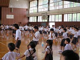 6年生が円の中心に集まり、1年生から5年生の見本になり練習をしました。