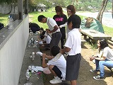今年度は、恒例の「サバイバルご飯」を袖ヶ浜で行いました。