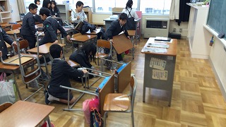 各教室で自分の使った椅子と机の足雑巾できれいにしました。